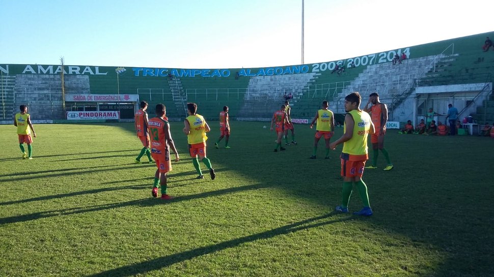 Em clima descontraído jogadores do Coruripe estão concentrados desde a manhã da quinta-feira 16. A última atividade foi o coletivo apronto no estádio Gerson Amaral, antes do embarque para a cidade de Feira de Santana.