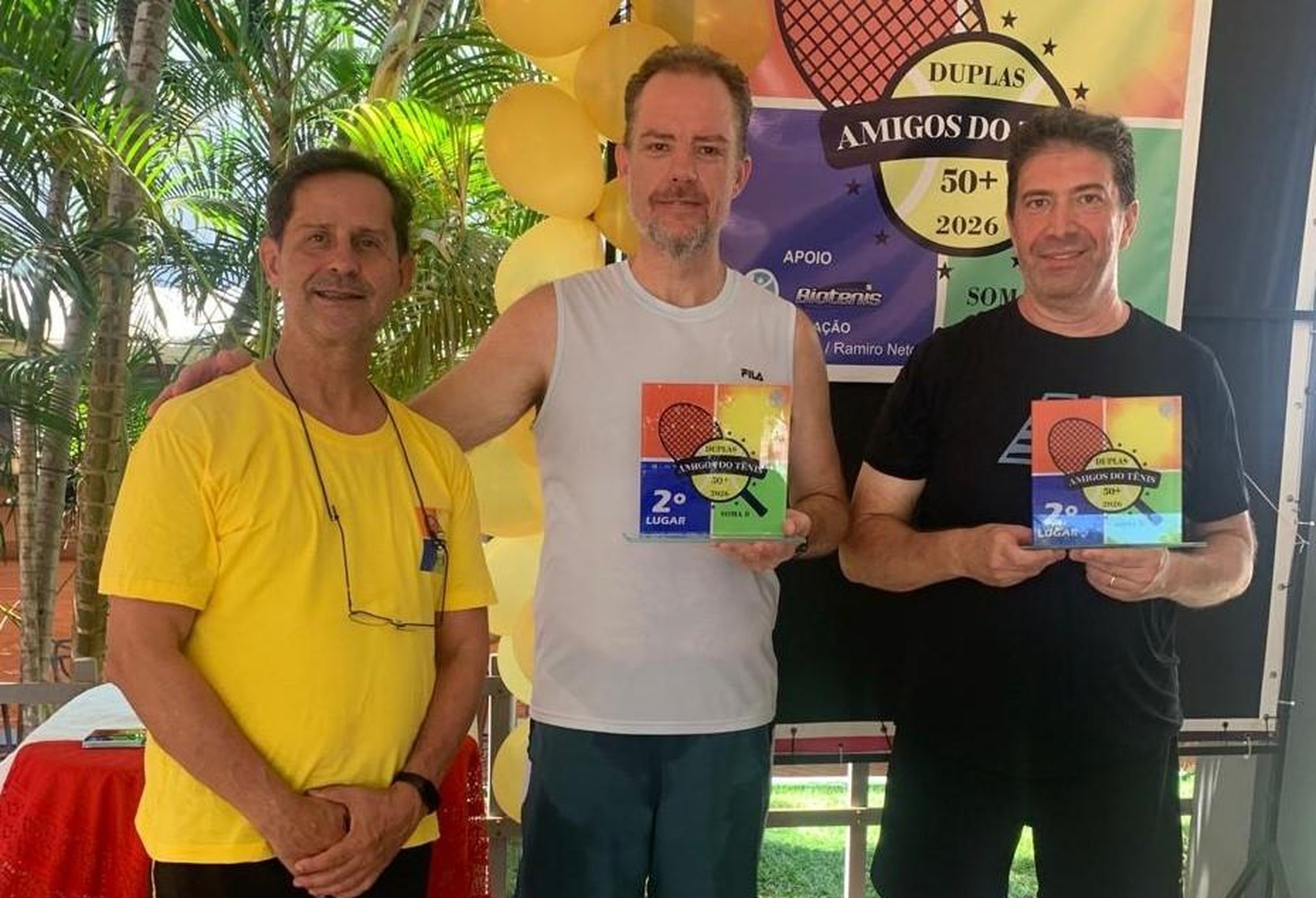 O torneio Amigos do Tênis 50+, na modalidade duplas livres, movimentou as quadras da Academia Biotênis neste fim de semana, reunindo atletas experientes e convidados mais jovens em partidas bastante disputadas. Os organizadores e também atletas, Alexandre Toledo e Ramiro Neto, levaram às quadras, além dos competidores da categoria 50+, cinco convidados 40+, que foram destaque na competição. A dupla campeã da categoria Ouro foi formada justamente por dois atletas 40+, Rafael Amorim e Fausto Alves, que venceram em uma disputa acirrada os veteranos Henaldo Melo e Massimo Lenaro.