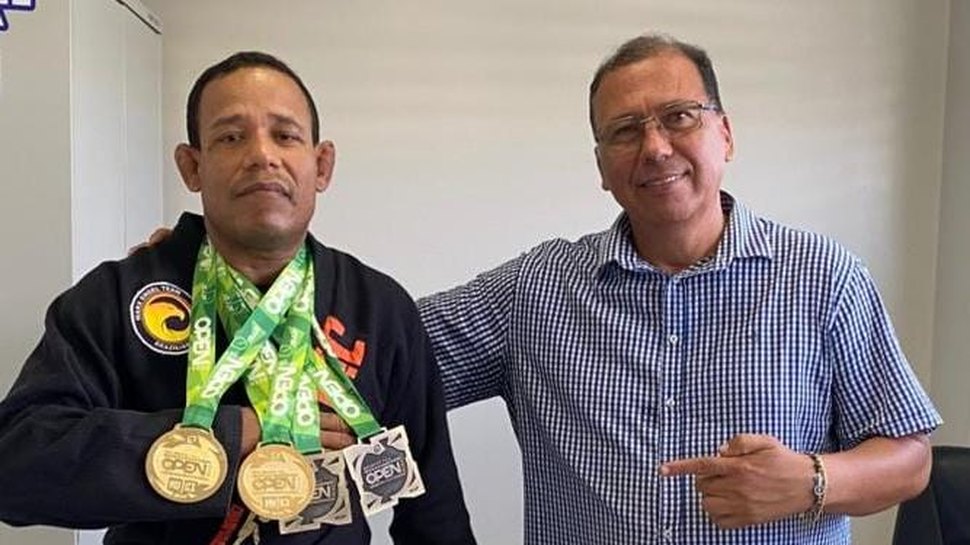 O secretário de Esporte de Arapiraca, Fabiano Leão, recebeu nesta terça-feira (10), o lutador arapiraquense de Jiu-Jitsu, Alexandre Negão, que conquistou duas medalhas de outro e duas medalhas de bronze, neste último fim de semana, no Salvador Fall International Open de Jiu-Jitsu 2026, na cidade de Madre Deus, interior da Bahia.