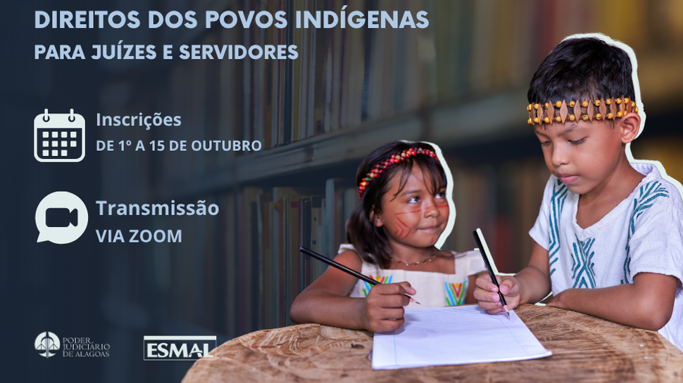 Magistrados e servidores do Poder Judiciário de Alagoas podem se inscrever no curso “Direitos dos Povos Indígenas”, promovido pela Escola Superior da Magistratura de Alagoas (Esmal). As inscrições estarão abertas até o dia 15 de outubro pelo Sistema de Eventos da Esmal, acessando o link.