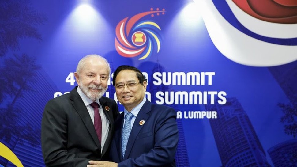 O presidente Lula encontrou-se, neste domingo, 26 de outubro, à margem da 47ª Cúpula da ASEAN, na Malásia, com o primeiro-ministro do Vietnã, Pham Minh Chinh. Ao relembrar a reunião entre ambos por ocasião da Cúpula do BRICS, no Rio de Janeiro, descreveu a sequência de encontros que os dois líderes mantiveram nos dois últimos anos como sinal da seriedade do compromisso brasileiro de fortalecer a relação bilateral.