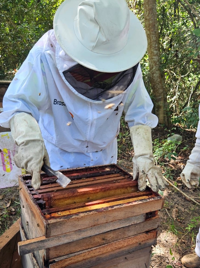 A iniciativa, apoiada pela Braskem e desenvolvida em parceria com a Uniprópolis, oferece capacitação completa na atividade apícola, que pode representar um acréscimo de cerca de R$ 2000 na renda mensal. O curso básico de apicultura, realizado em um dia intensivo, combina teoria e prática de forma acessível. Durante o período da manhã, os participantes aprendem sobre a organização da colmeia e a importância das abelhas para o meio ambiente e a economia local. À tarde, a experiência se torna concreta no apiário, onde todos praticam técnicas fundamentais como manejo da colmeia, uso do fumegador, identificação da abelha rainha e extração de mel. Além do certificado que marca o início de uma nova possibilidade profissional, parte desses novos apicultores receberam também um conjunto completo de Equipamentos de Proteção Individual (EPIs), garantindo que possam iniciar suas atividades com segurança.