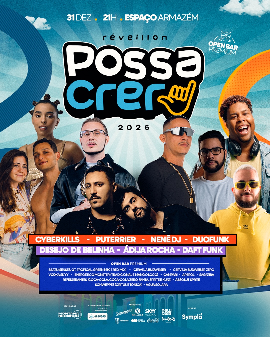 O Réveillon Possa Crer chega à sua quarta edição consolidado como o maior réveillon alternativo de Alagoas e, em 2026, reforça seu principal diferencial: um line-up diverso, potente e representativo de diferentes cenas musicais. A virada acontece no Espaço Armazém, Jaraguá, a partir das 21h do dia 31 de dezembro, totalizando dez horas de festa.