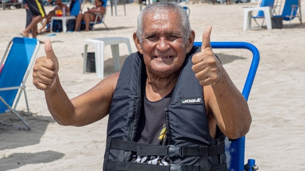 O projeto Praia Acessível começou o ano, colecionando histórias emocionantes. Uma delas é a do aposentado Joaquim Tenório Cassiano, que voltou a tomar banho de mar, após um longo período longe da praia.