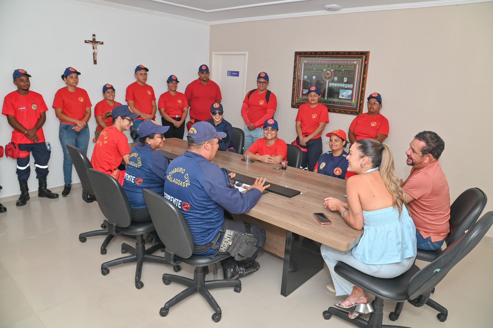A prefeita Angela Vanessa e o secretário de Relações Institucionais, Neno da Laje, receberam na sala de reuniões da Prefeitura um grupo de bombeiros civis para discutir estratégias e alinhar os detalhes sobre a implantação de um bombeiro civil em cada escola da rede municipal.