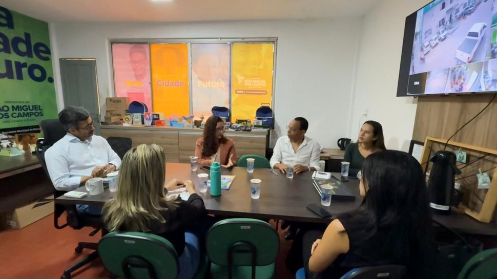 Com o objetivo de alinhar e estruturar a relação entre a Educação e a agricultura familiar de São Miguel dos Campos, o secretário municipal de Educação Álvaro Leiva recebeu, na manhã desta terça-feira (10), em seu Gabinete, o secretário municipal de Agricultura Tinho Silva, a analista de Ambiente de negócios do SEBRAE Tatiana Eigler, a consultora do SEBRAE Rafaela Brasil, a nutricionista da Semed Camila Xavier e a representante do setor de planejamento de compras Paula Cristina.
