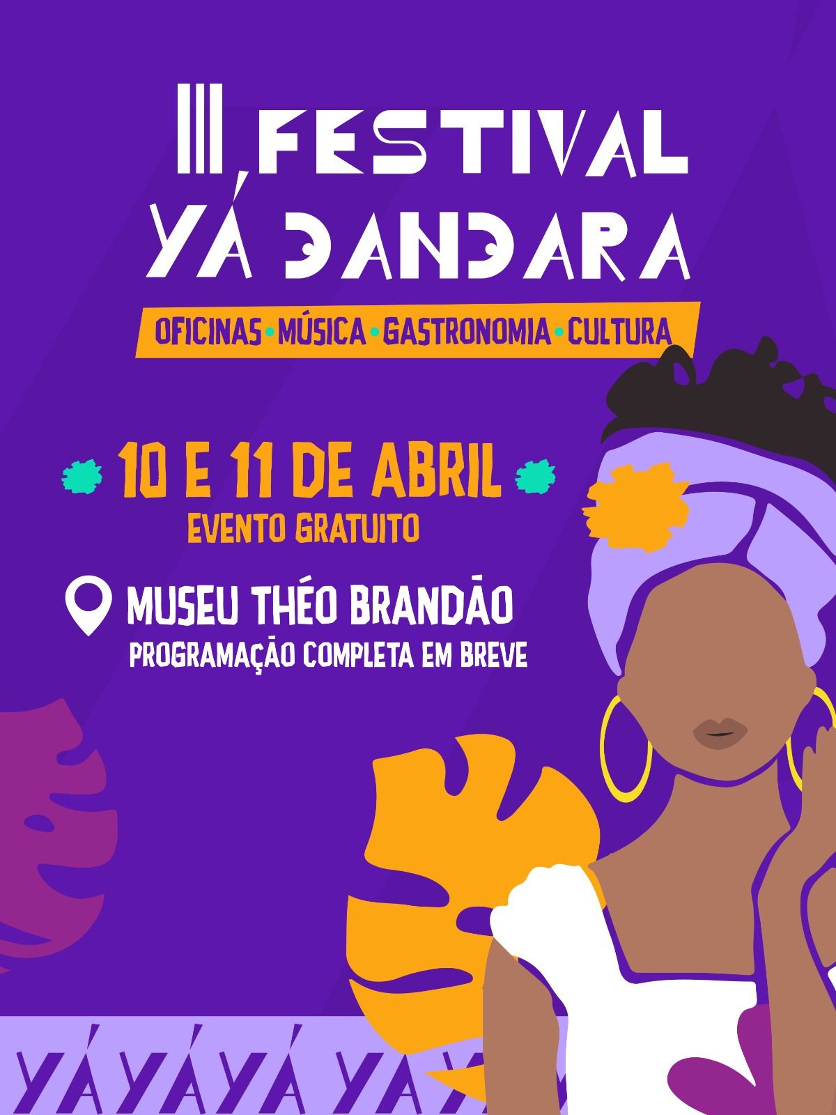 O ritmo dos tambores e a força da ancestralidade feminina ocupam Maceió nos dias 10 e 11 de abril com a realização do III Festival Yá Dandara: Vozes e Ritmos do Feminino. O evento, totalmente gratuito, terá vivências percussivas, Feira de Empreendedoras e Gastronomia Afro, debates e shows musicais no Museu Theo Brandão, no Centro da cidade.