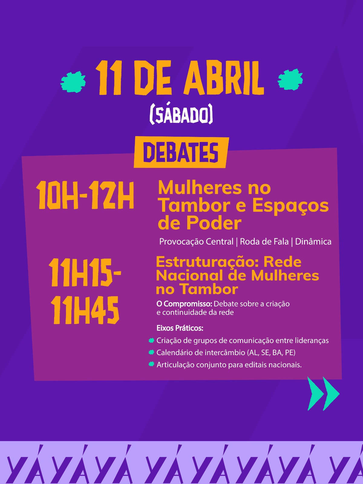 O festival foca na criação de uma rede de cooperação entre mulheres percussionistas do Nordeste e na preservação do patrimônio imaterial. O projeto, aprovado pela Lei Rouanet (PRONAC 250473), é realizado pelo Maracatu Yá Dandara, a Associação Cultural Tambores de Alagoas e o Museu Theo Brandão, com patrocínio da Equatorial Alagoas.