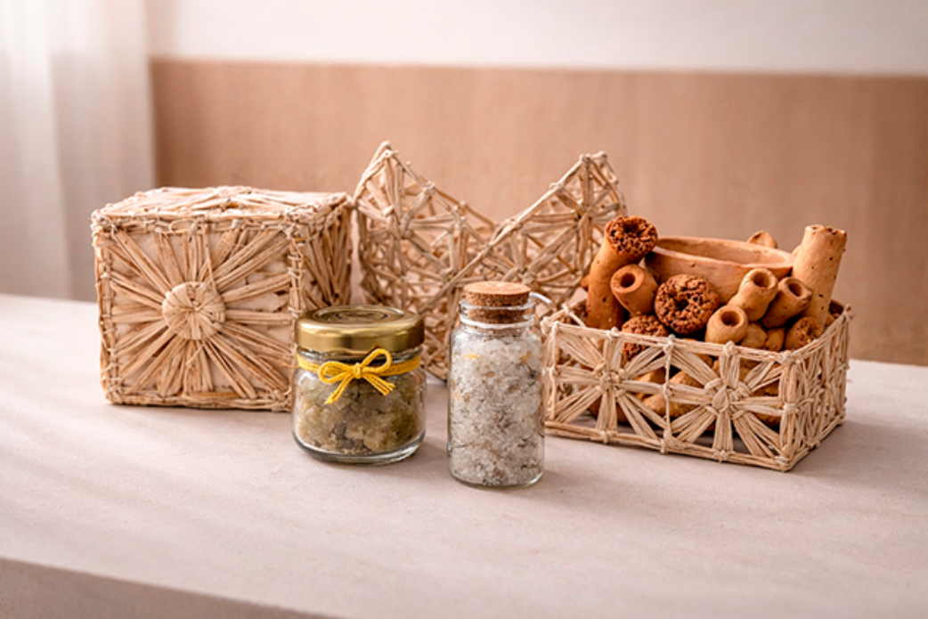 Os hóspedes se conectam genuinamente com a cultura local por meio de três tipos de mimos, que são entregues ainda no check-in, dependendo da categoria de cada quarto: Cestinha artesanal com pote de cocada de capim-limão com flor de sal (esta, uma produção autoral do chef Altemar Silva); mini cachepô artesanal com marcador de livro em fibra inspirado no ponto da renda filé; pote de cocada de capim-limão com flor de sal e Sais escalda-pés artesanais de bem-estar; e caixa de fibra de bananeira criada exclusivamente para os hóspedes do Sais com marcador de livro artesanal em ponto inspirado no filé; cocada de capim-limão; Sais escalda-pés artesanais; e a obra “Coral Sais”, feita em cerâmica pela artista plástica Fernanda Cedrim, da Nan Cerâmica, e inspirada na barreira de corais que banha toda Maceió.