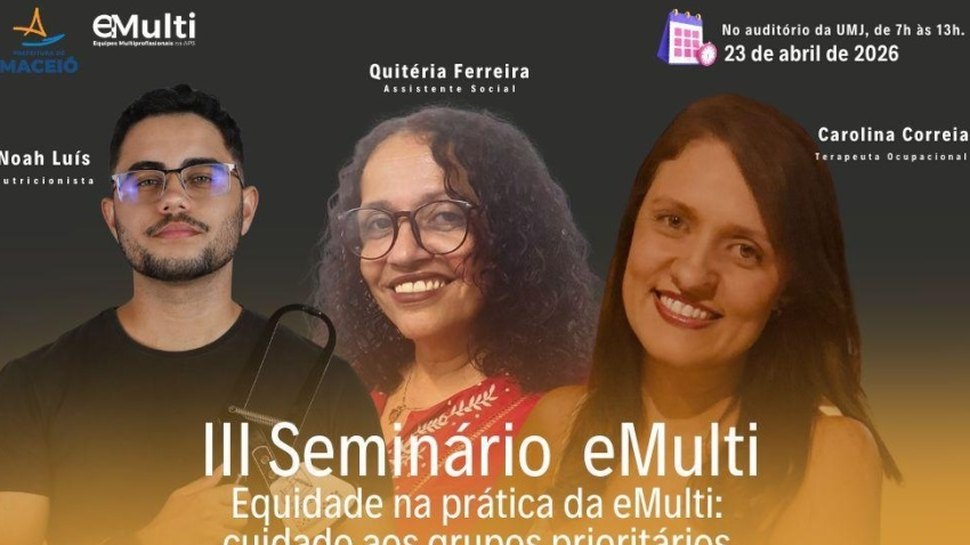 Com o intuito de proporcionar mais inclusão e atendimento adequado na Atenção Primária a públicos que sofrem apagamento social, a Secretaria de Saúde de Maceió (SMS) promoverá no dia 23 de abril, no auditório do Centro Universitário Mário Jucá (UMJ), no Barro Duro, o III Seminário Emult “Equidade na prática”. O evento ocorre das 7h às 13h e propõe fortalecer a prestação de serviços com equidade a grupos prioritários.
