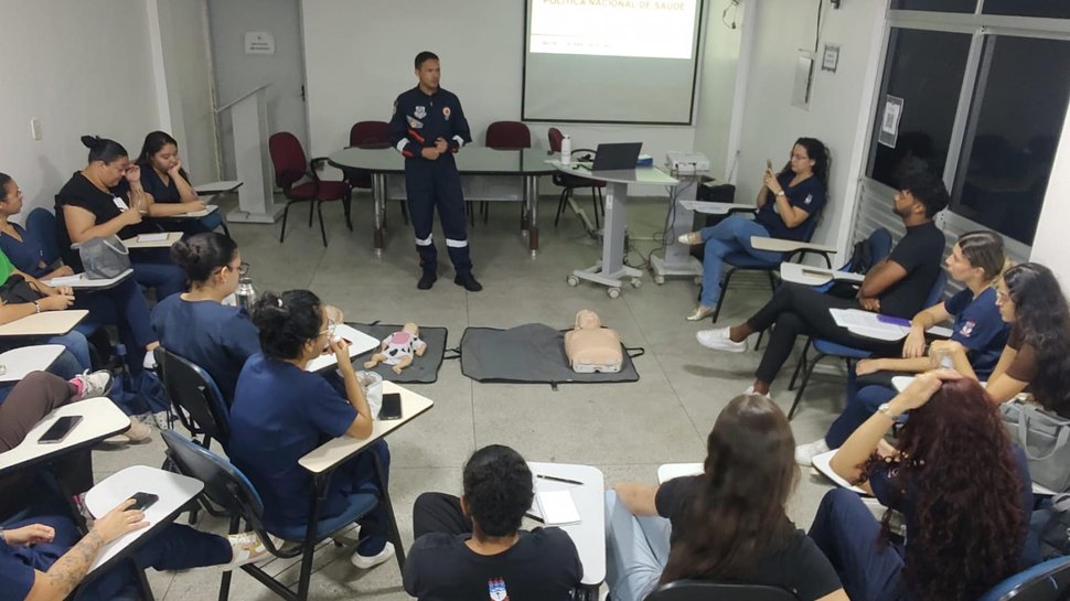 Na parte prática, os acadêmicos aprenderam sobre as mais recentes diretrizes da Associação Americana de Cardiologia (AHA) de 2025, como o atendimento correto realizado numa Parada Cardiorrespiratória (PCR) – que é a interrupção súbita dos batimentos cardíacos e da respiração.