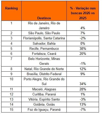O Rio de Janeiro, que ocupa a primeira posição em ambos os rankings, segue impulsionado por seu forte apelo turístico global, com destaque para a temporada de verão e o Carnaval. O interesse crescente também acompanha a meta do Governo do Estado do Rio de Janeiro** de atingir 2,5 milhões de visitantes internacionais em 2026, reforçando o momento positivo do destino no radar global.