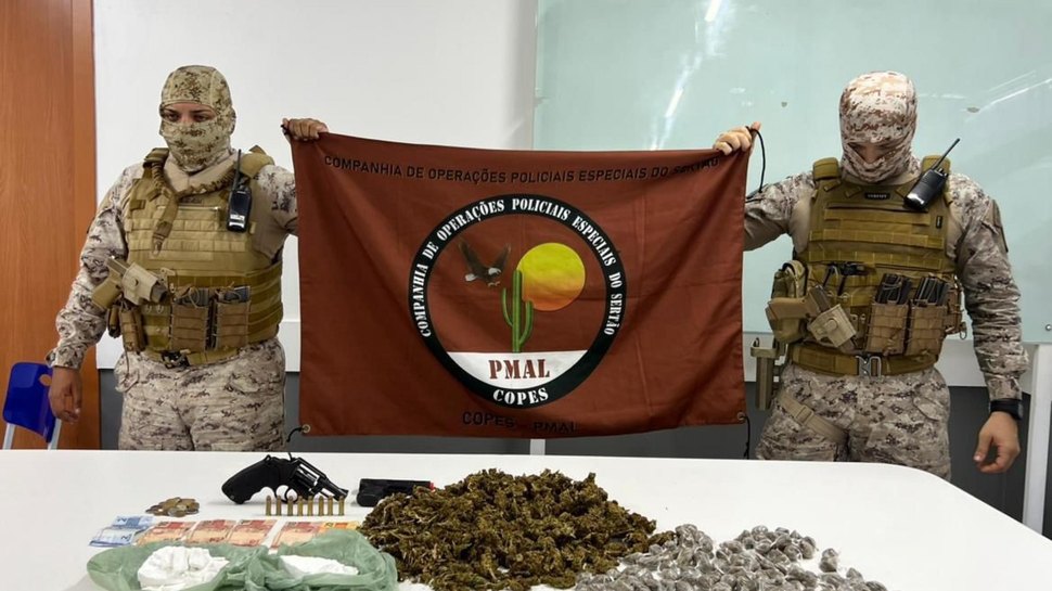 Além dos dois primeiros abordados, um casal que estava no interior da residência foi abordado. Os quatro indivíduos e os materiais foram conduzidos ao Centro Integrado de Segurança Pública (Cisp) de Palmeira dos Índios.