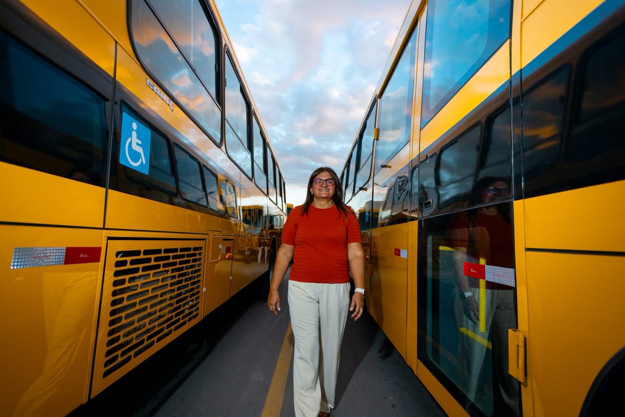 O ponto alto do evento foi a apresentação dos 14 novos ônibus escolares. Os veículos, modernos e padronizados, já começam a circular para garantir que os estudantes tenham um transporte seguro, confortável e digno no trajeto entre suas casas e as unidades de ensino.