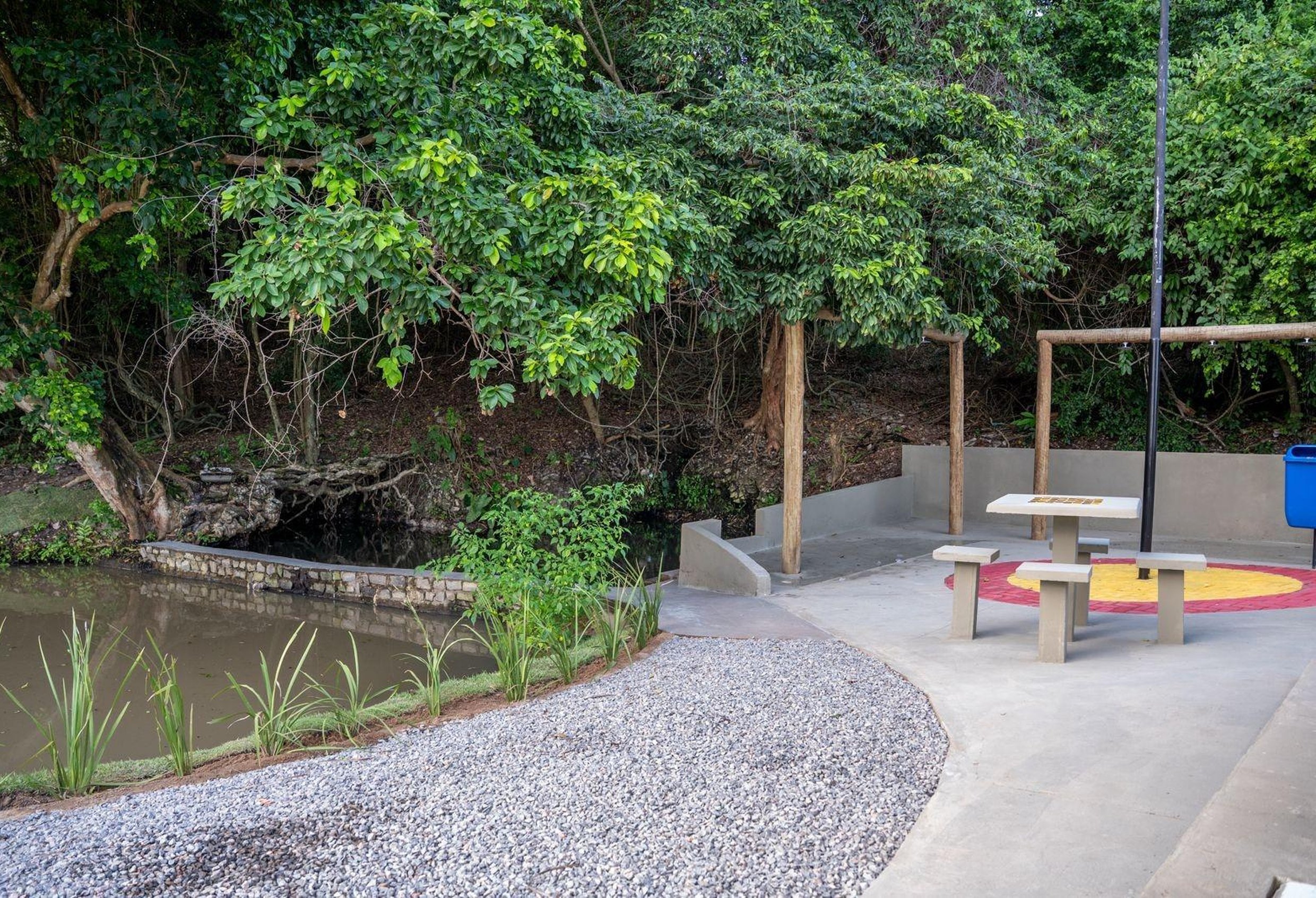 A estrutura conta com área de convivência, banheiros, espaço para lazer, fonte com área para que a população possa se refrescar e um ambiente planejado para atender moradores de todas as idades, proporcionando mais qualidade de vida e fortalecendo os vínculos comunitários.