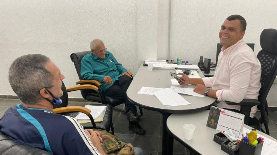 Nesta segunda-feira (20), o titular da Superintendência Municipal de Iluminação Pública (Sima), João Folha, recebeu o produtor cultural e líder comunitário do bairro Ponta Grossa, Petrúcio dos Santos.