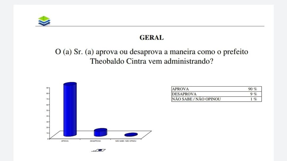 De acordo com a pesquisa a gestão do prefeito Theobaldo Cintra tem 90% de aprovação, enquanto apenas 9% desaprova e 1% não sabe ou não opinou. A atual gestão tem sido reconhecida pela sua capacidade em executar projetos que garantam o desenvolvimento econômico e social de Major Izidoro.