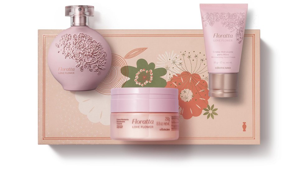 Entre os destaques deste ano, o Kit Lily traz três itens com a mais pura fragrância dos lírios: Fragrância, Creme Acetinado Hidratante Desodorante Corporal e Creme Desodorante Hidratante para Mãos – todos pensados para o dia a dia de mulheres românticas que apreciam o que há de bom na vida.O Kit Liz chega com dois itens da fragrância feminina que se destacam pela intensidade: Desodorante Colônia e Creme Hidratante Corporal, que traduzem a essência amadeirada combinada à delicadeza e sensualidade de um floral arrebatador, ideal para a mulher que acredita que cada experiência vivida até hoje traz um brilho que a enaltece e a faz se sentir única; além do Kit Floratta Love Flower, que traz a fragrância com notas florais e amadeiradas, capaz de traduzir o romantismo e a ousadia em sua essência, em um kit que reúne itens de perfumaria e cuidados com o corpo, com Desodorante Colônia, Creme Desodorante Hidratante Corporal e Creme Hidratante para Mãos.