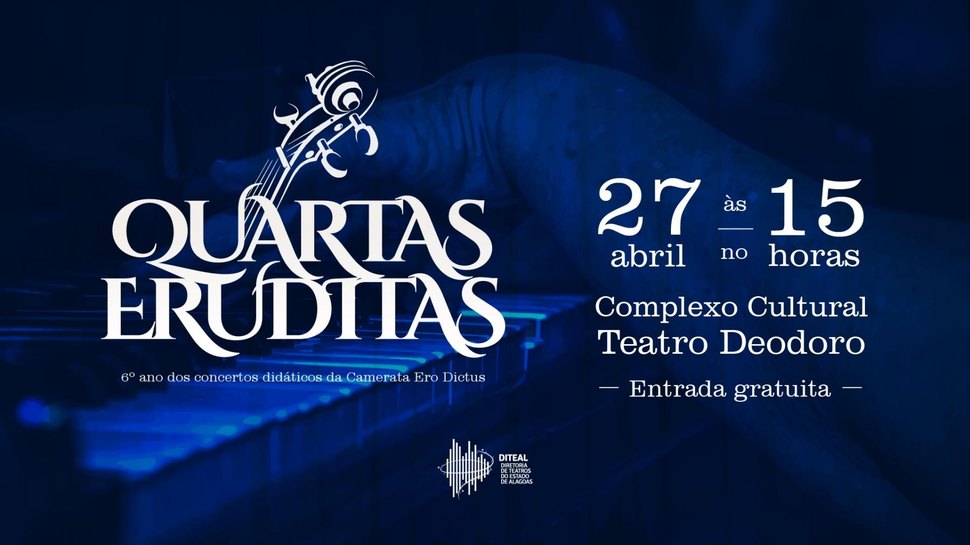 Após uma volta, que foi um verdadeiro sucesso, o projeto Quartas Eruditas, uma parceria da Diretoria de Teatros de Alagoas (Diteal) com a camerata Ero Dictus, vai fazer mais uma apresentação nesta quarta-feira, 27, a partir das 15h, na Sala de Música do Complexo Cultural Teatro Deodoro.